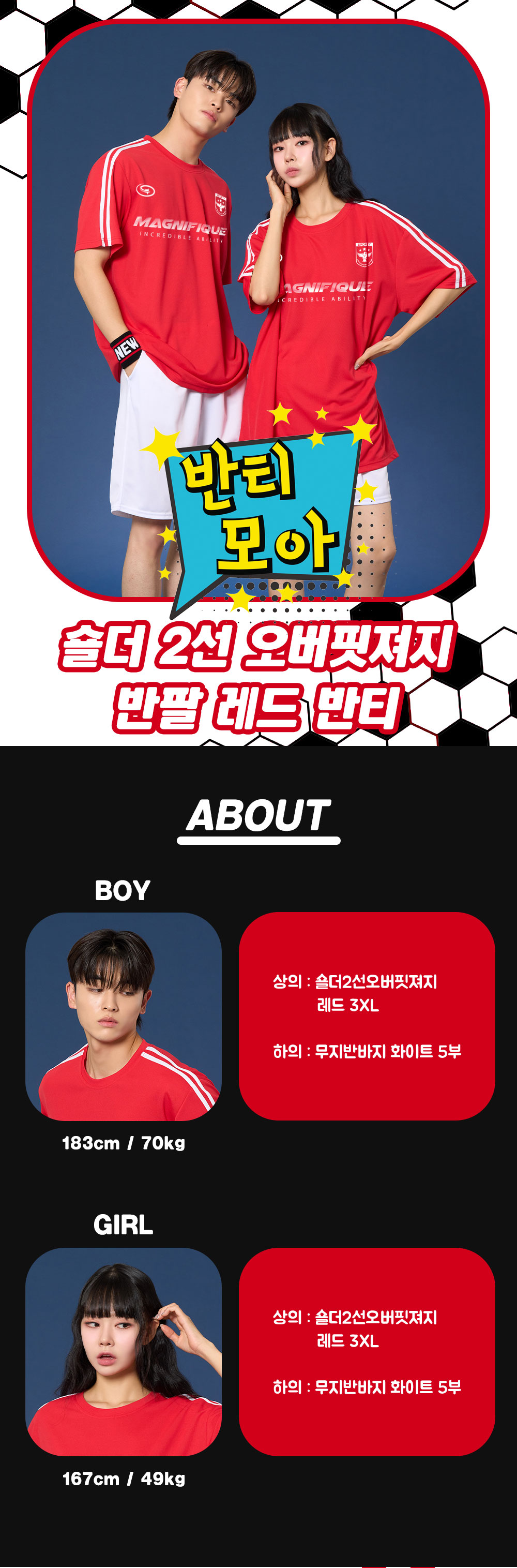 ★★★ 숄더2선 오버핏져지 반팔 레드 반티 ★★★
