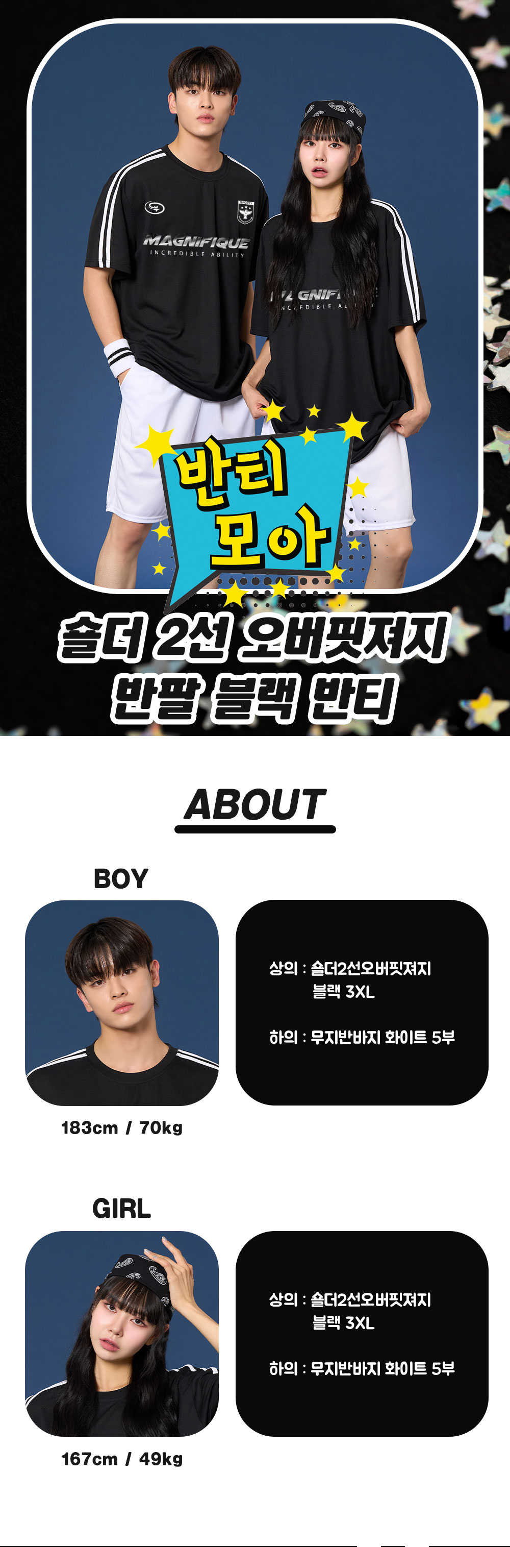 ★★★ 숄더2선 오버핏져지 반팔 블랙 반티 ★★★
