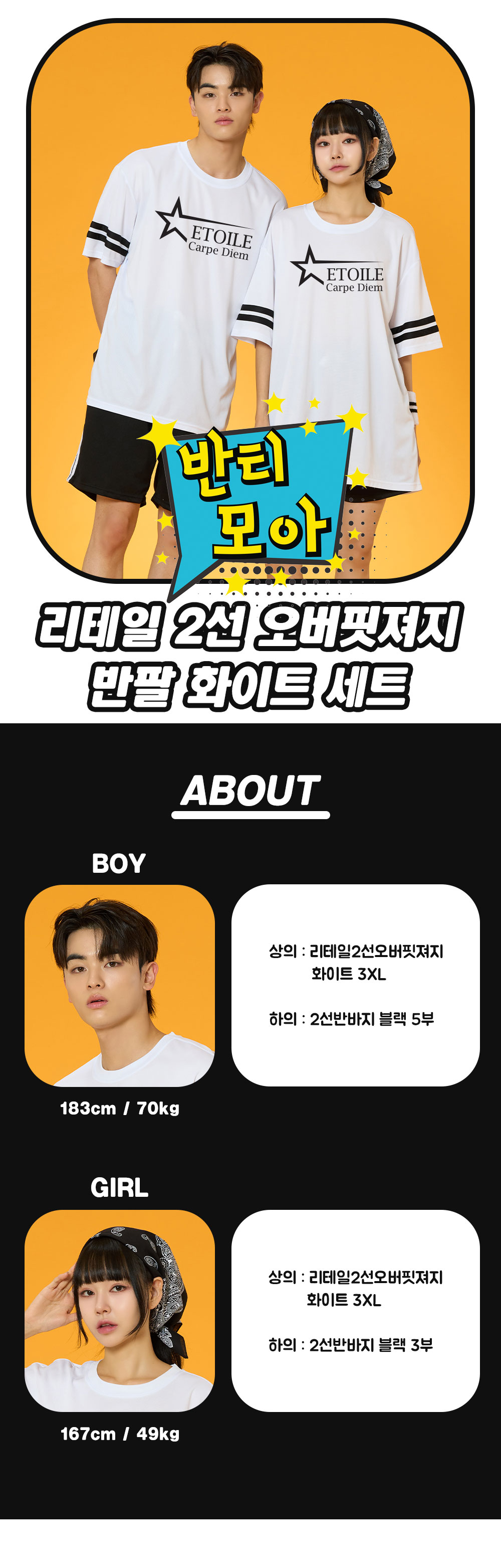 리테일 2선 오버핏져지 반팔 화이트 반티
