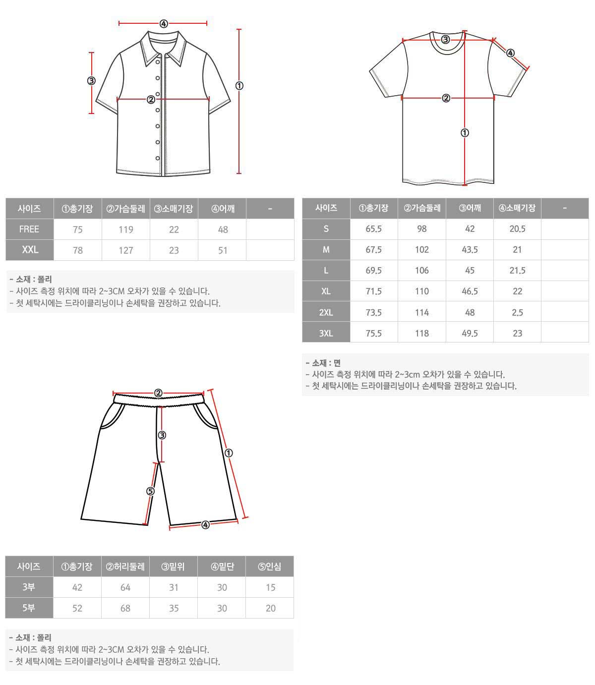 2선 반바지 사이즈