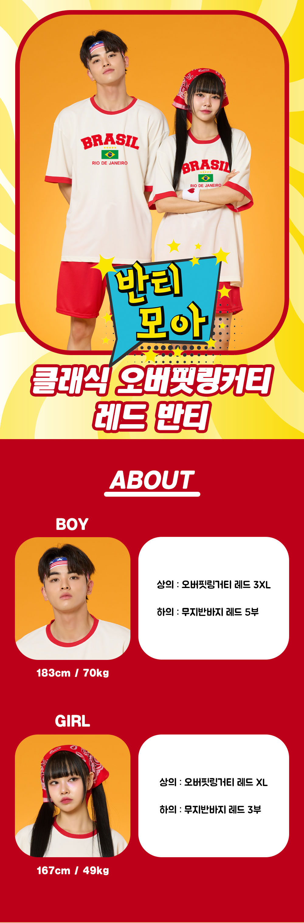 오버핏링거티(레드)(브라질인쇄포함)