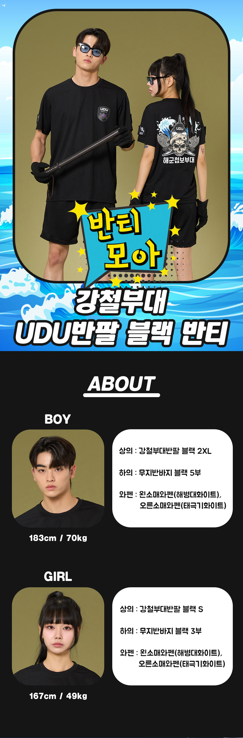 강철부대 UDU 반팔 블랙 반티